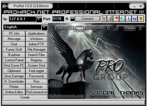 Proratz is here.Version 2.0.ProRat is a Remote Administration Tool made by PRO Group. All PRO Group Members contributed to improve and update this program with all ProRat testers support we fixed up lots of bugs and mistakes to make it the best in its own category.